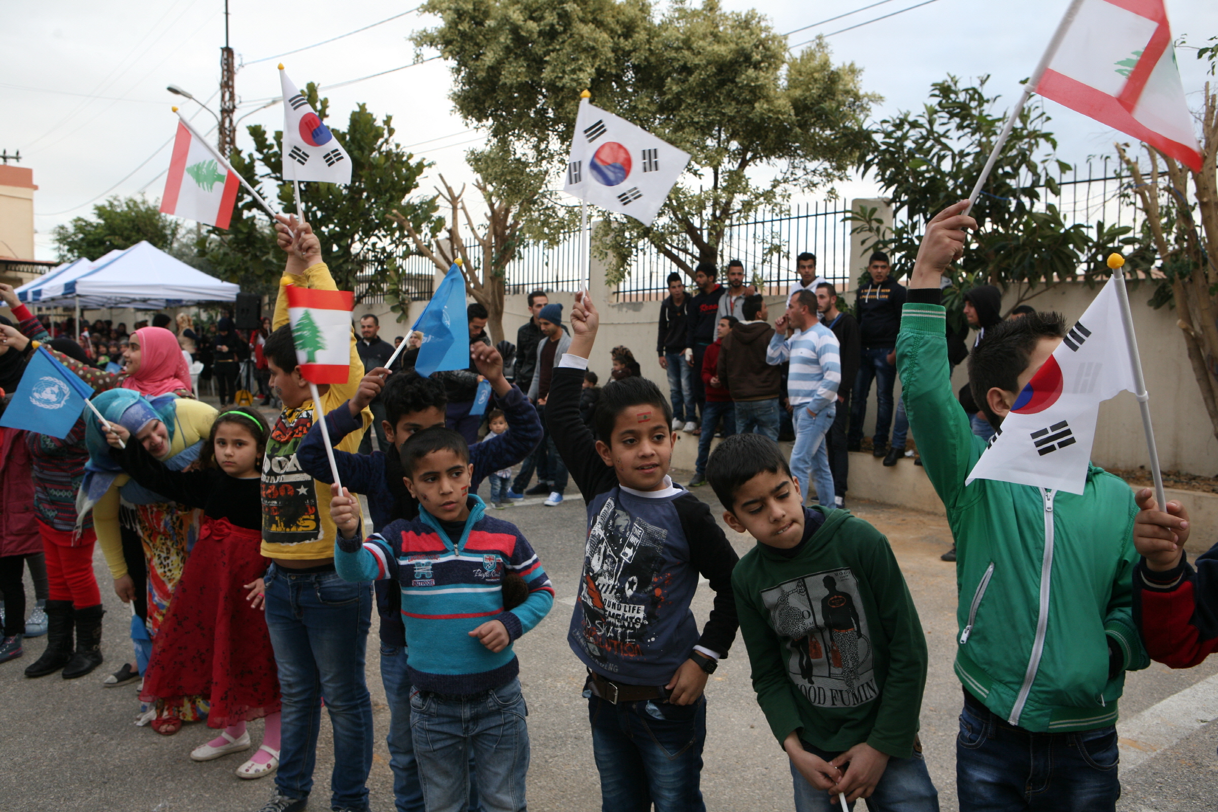 2015.03.01_레바논, 동명부대 방문,동명부대 물품공여식 환영하는 레바논 아이들.JPG