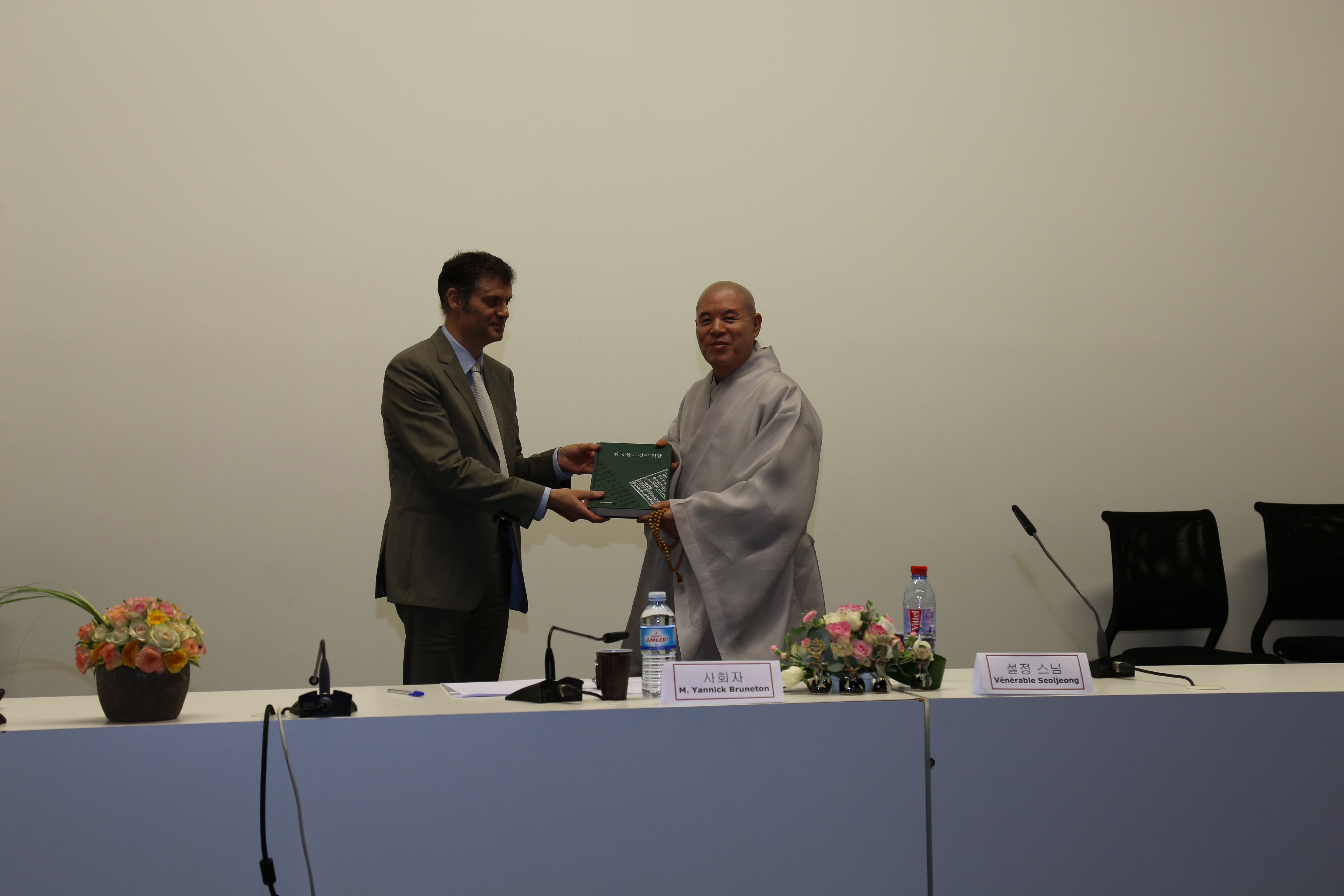 2016.10.24~29_프랑스 행사, 야닉 브루닉통 파리7대학 교수에게 코리언 부디즘을 전달.jpg