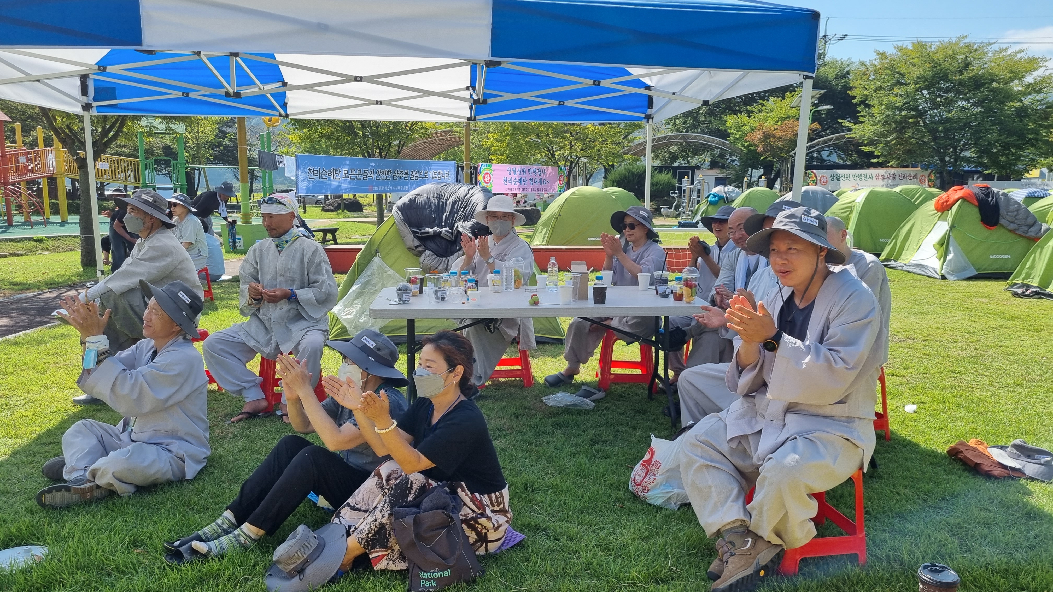 청암사승가대학 학인스님들이 함께 한 숙영지의 태극권 시연모습 및 대중공양 모습 (1).jpeg
