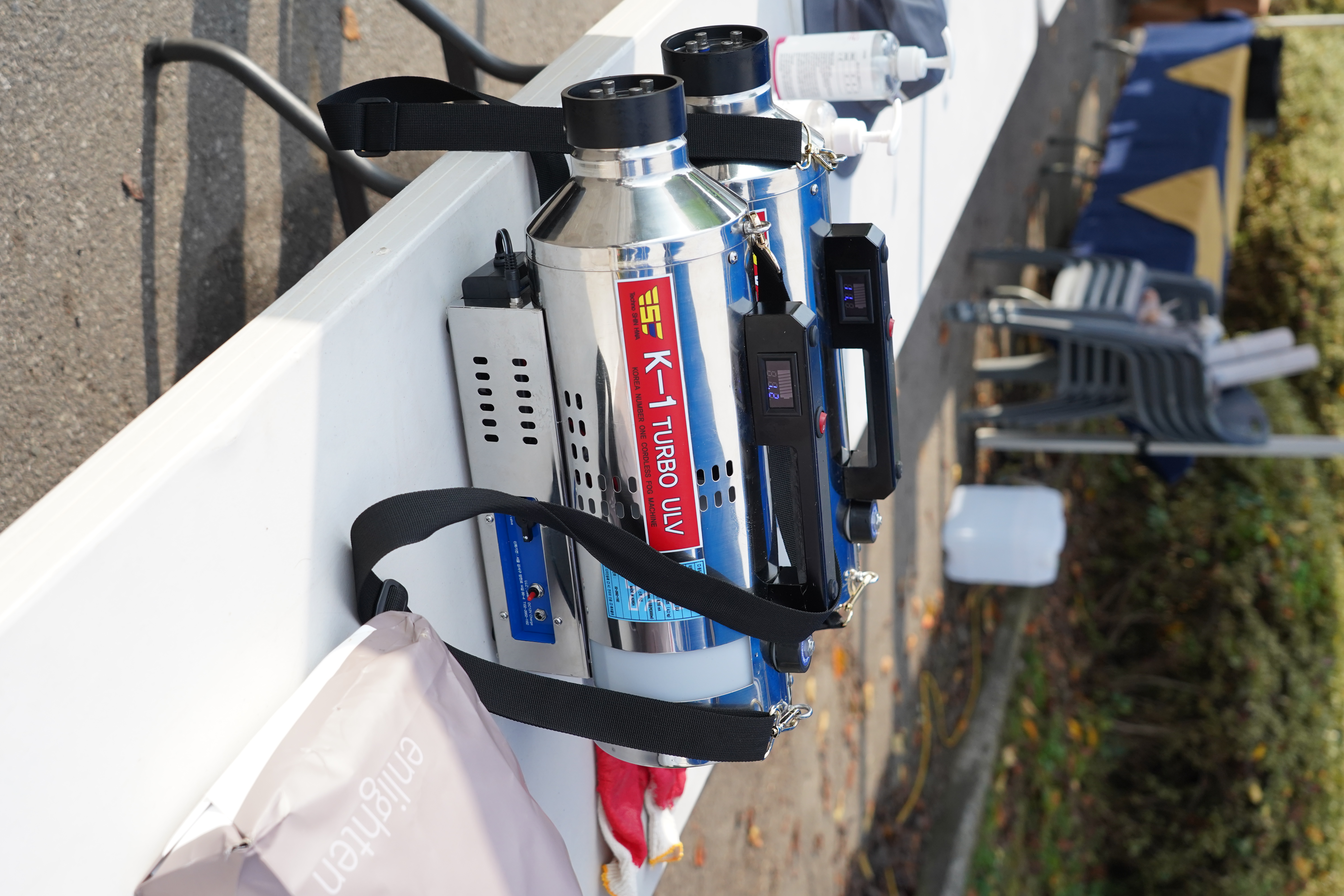 숙영지를 준비중인 지원단 방역기(사성암주차장) (3)